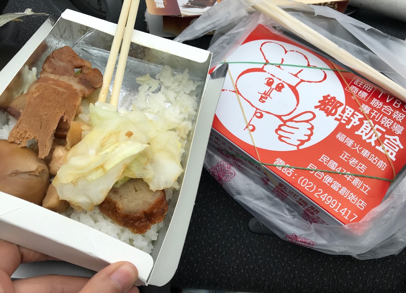 網路上說這家是正牌的福隆便當,但也不知道到底是真的還是假的。 因為整條街都是福隆便當 這家”鄉野便當” 位置很好認,在一出福隆車站的左手邊第一家就是了! 一個便當60元 裡面有豆干 肉(如果要瘦肉要提前說) 酸菜 鵪鶉蛋 會放兩顆鵪鶉蛋是: 因為最近雞蛋的量不足