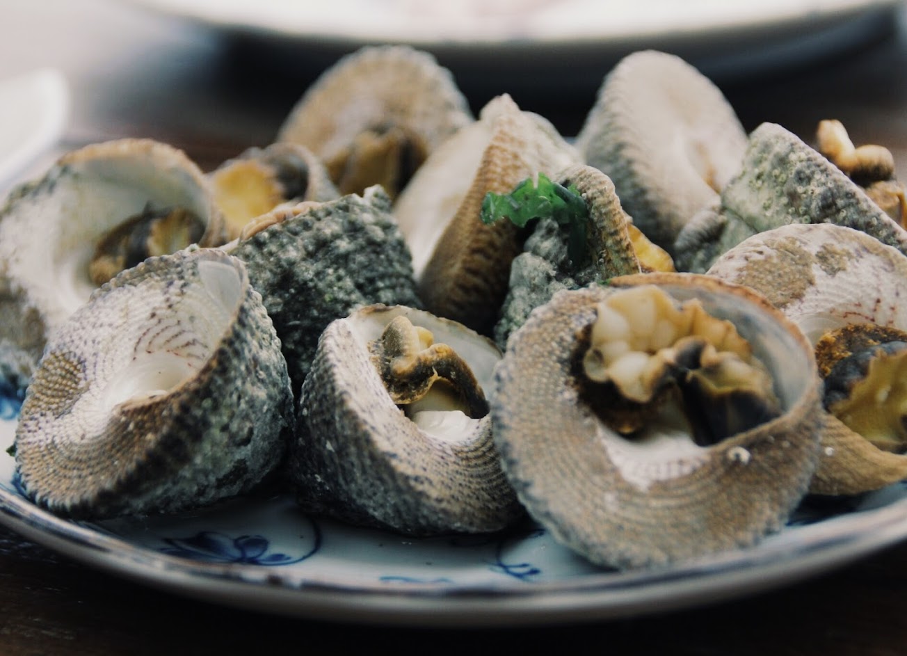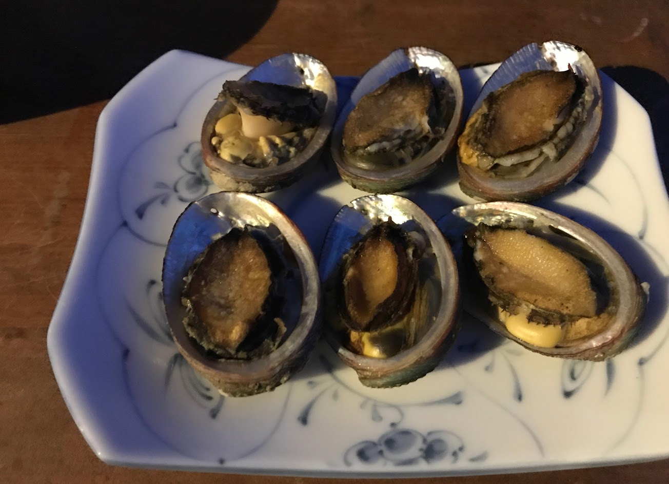 老闆娘說 他們的九孔都自己養的 幾天就換一次水 所以內臟可以吃 聽說內臟吃了對眼睛好
