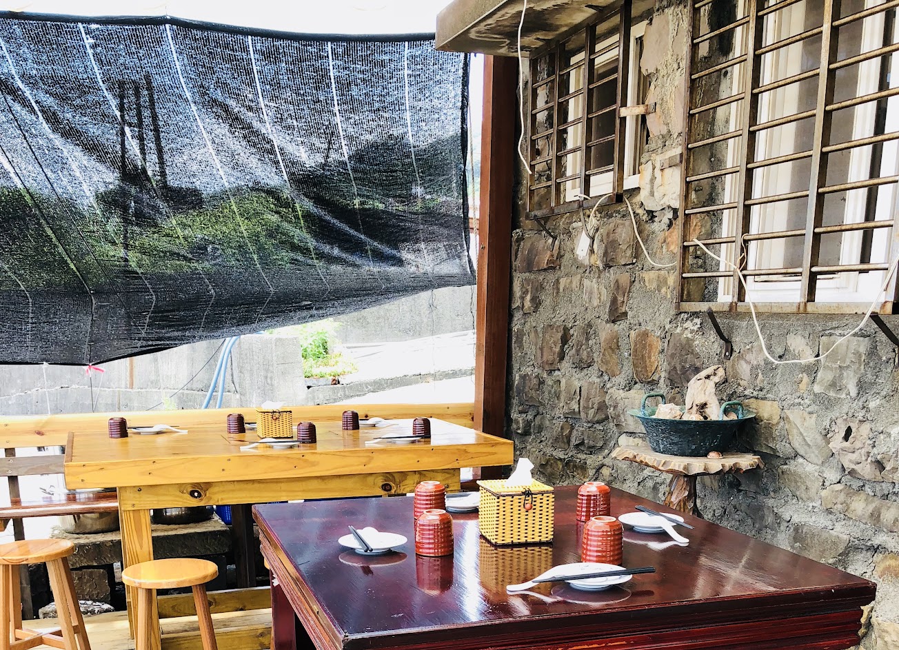 好幾次要吃都訂不到位 終於訂到了!老闆一家都好親切樸實 他們家在這養殖九孔40年 老闆老闆娘平日台北市區上班 週末食堂才開 收養了兩隻狗狗 旺來跟muscle 別看他們壯壯的其實很親人可愛 吃了招牌海葡萄丼飯 烤九孔 還有現剖紫海膽 老闆娘拿著新鮮現撈的九孔海膽給我們欣賞後才下鍋 每到菜調味都不多 只有新鮮滿分 天然甘甜的海洋味 真的很棒很推 換個口味~捨棄傳統的海鮮餐廳吧~ 後院面海的位子更讓人心情超好