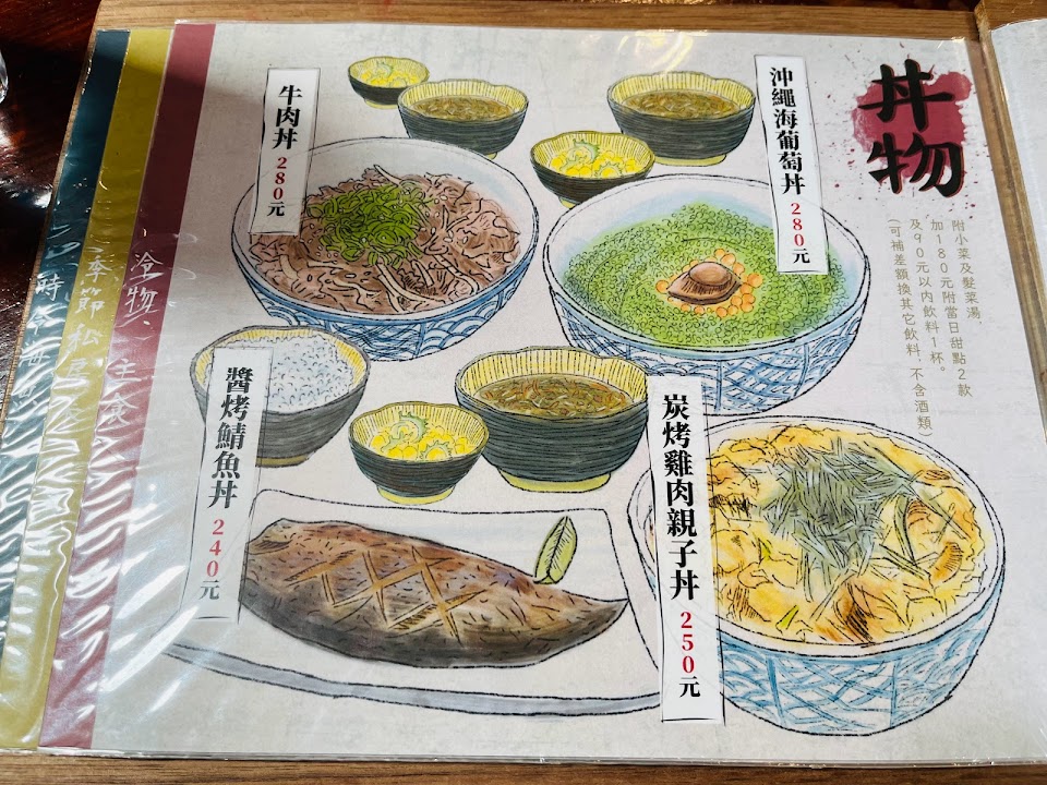 當天點了 ?沖繩海葡萄丼 口感很特別、鹹甜鹹甜 ?醬烤鯖魚丼 好喜歡?好好吃? ?野生九孔生魚片 ?醬烤透抽 每一道菜都好新鮮好好吃? 餐點:5 服務:5 氣氛:5