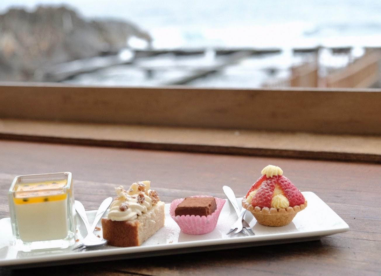 舒適的鄉村風海景餐廳,以海鮮、甜點和茶飲聞名。