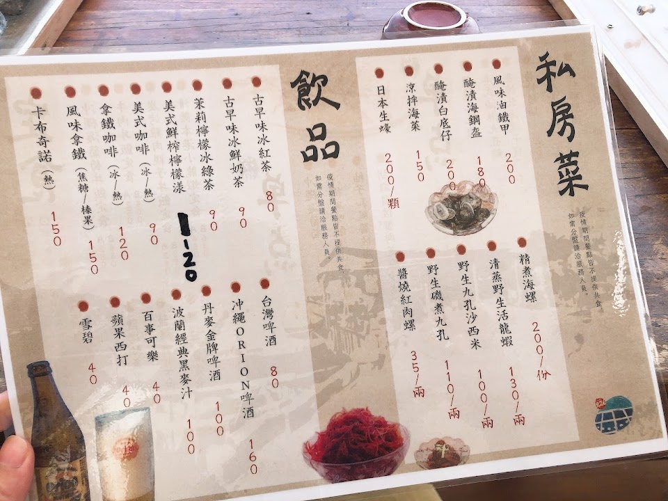 2023/09/03(日)前往用餐,正好遇到海葵颱風來襲,帆布拉下為保護客人及用餐環境,但仍未完整的綑綁好各個點,導致於帆布各種風吹雨打時,掉落了脆化的線材於飲料中,以及海蟑螂也不時出現於桌上,此部分建議店家可使用杯蓋予客人使用,反應予服務人員後,很客氣地協助更換飲料;待風雨加大時,因帆布未綑綁得宜,餐點亦被添加了不少雨水,反應予服務人員後,很客氣地協助更換至室內位置。 餐點部分大部分皆不錯,點了海葡萄丼、牛肉丼、醬烤透抽、海鋼盔、烤午仔魚等,飯的部分真的太過濕黏,最後沒有食用完畢。 當天抵達時店家停車位已停滿,僅能停去前方公有停車場,慎是方便。 服務 內用 餐點類型 午餐 平均每人消費金額 $600-800 餐點:4 服務:4 氣氛:5 建議的餐點 沖繩海葡萄丼飯套餐, 牛肉丼 飯, 醬烤透抽, 藍帶甜點