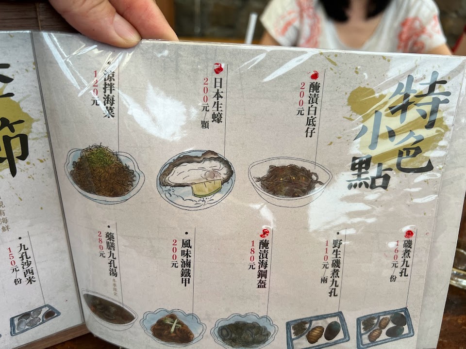 很有特色的海邊小店,要預約,鹽烤九孔很新鮮!海葡萄口感很特別,烤魚烤的很好!飯的口感差了一點點,有時間會再回訪!一個套餐$250價格不貴!