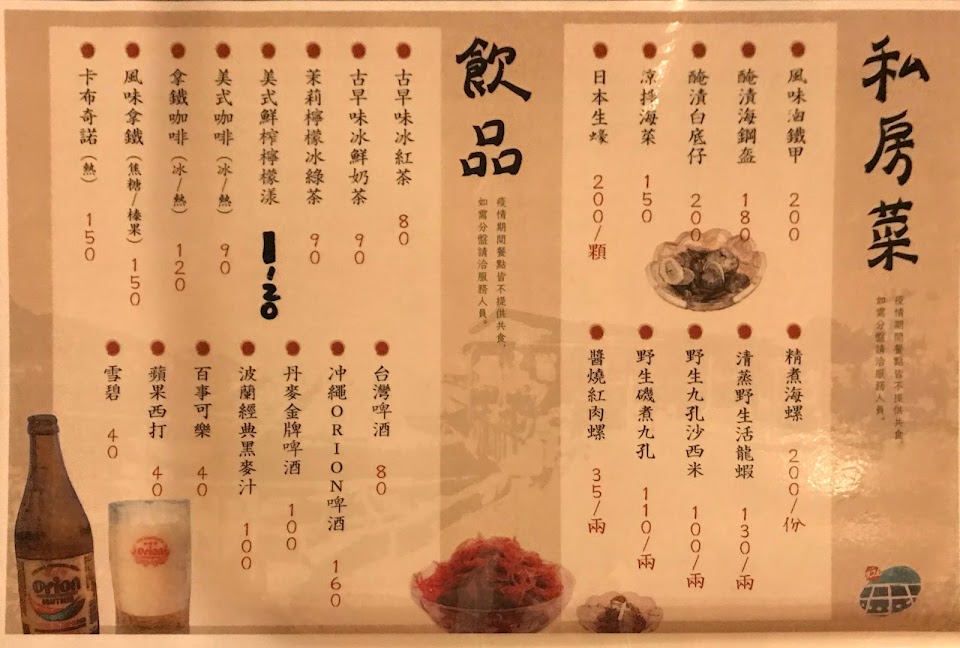 因為餐廳就位在海邊,所以會對新鮮度比較在意,看到菜單有時令鮮魚就想點來吃吃看!所以詢問店員兩數跟大小有沒有比較適合兩人的,店員和我們推薦有8.5兩的?可以點,我們也覺得ok