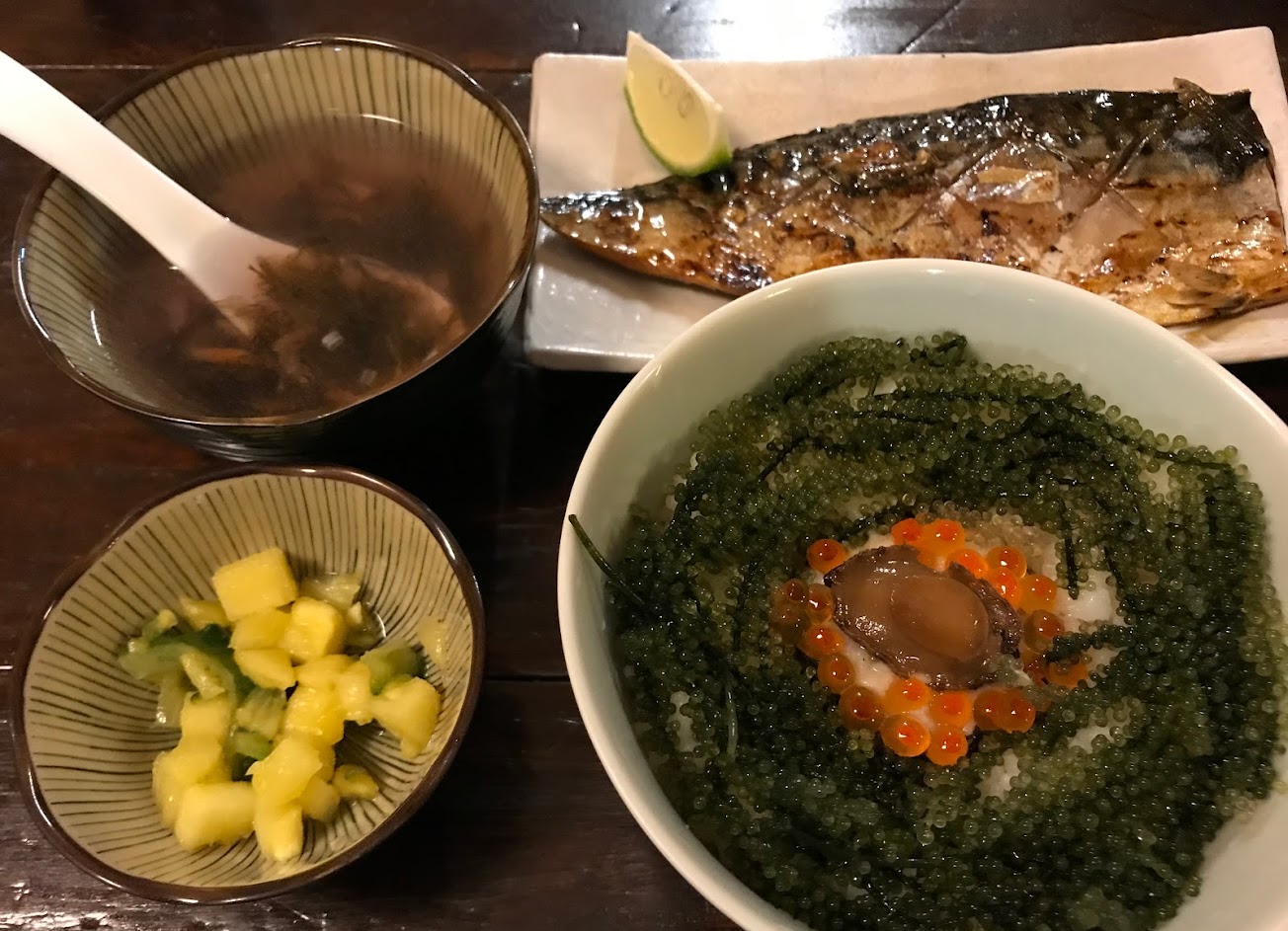 這是一個充滿沖繩風味的餐廳,雖說海葡萄丼飯是這家的特色餐點,但下次我來應該會直接單點各種菜餚,畢竟一個丼飯是不能滿足我對海鮮的渴望的
