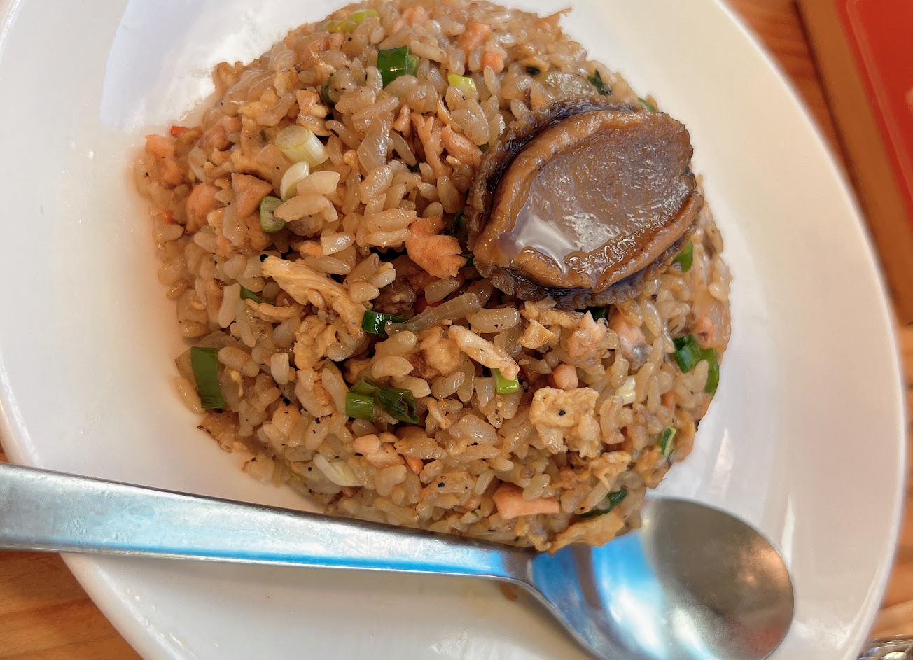 九孔鮑炒飯- 九孔一個在上面哈哈哈哈哈哈 但很好吃唷! 調味不錯 蠻鮮的