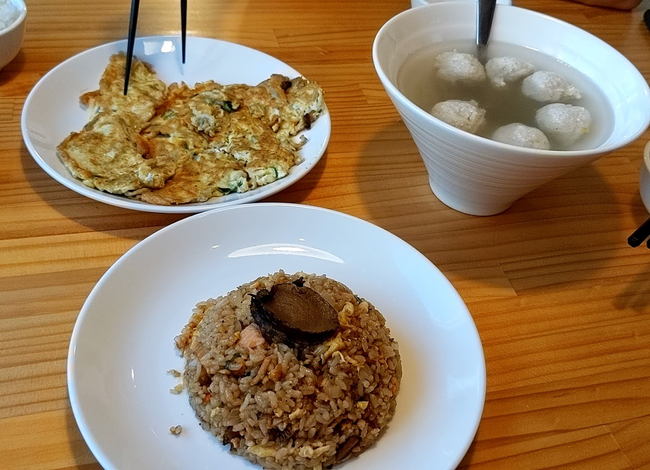 點了炒飯、巨蟹棒、菜、湯、魚蛋沙拉基本上都滿不錯的。雖然不是像一般的熱炒海產店的份量那麼多,但四人份還算滿足夠的。空間也算舒適。建議開車來,需現場登記候位。