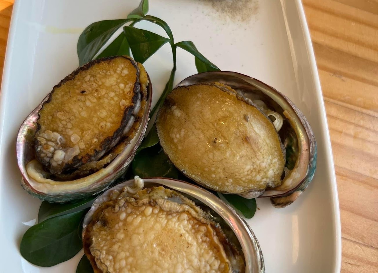 煎烤大鮑魚 4.5星: 老闆自己養殖的果然新鮮,食用前先翻到另一面移除黑色或黃色的鮑魚肚腸。然後擠上些檸檬汁,一口咬下,我的媽啊啊啊啊啊! 表面炙燒的香氣,伴隨著Q彈的口感,非常的好吃,第一次吃到這樣有印象的鮑魚肉,值得為了這一道而來!