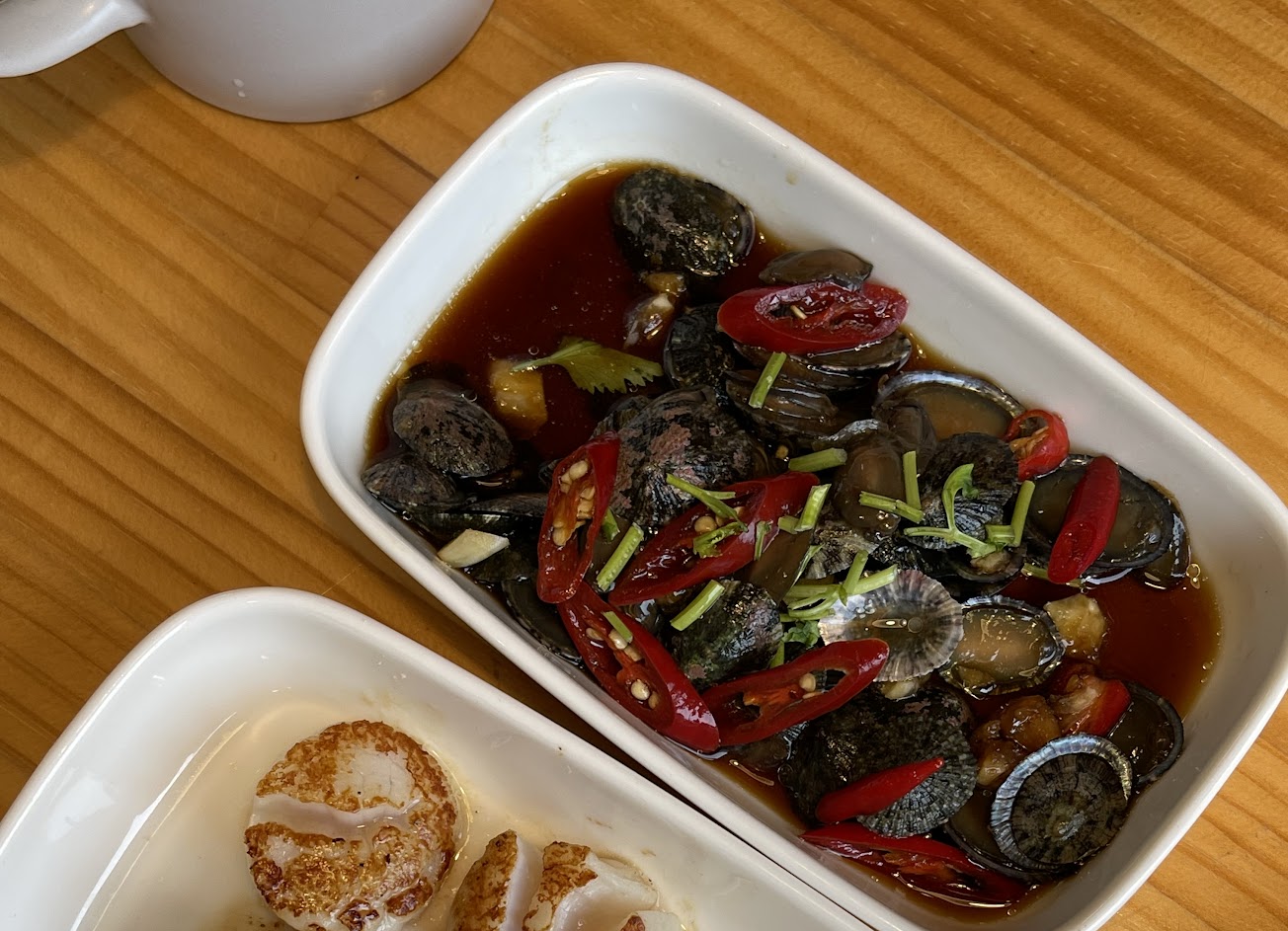 等待入座時間看到幾組常客又來光顧與老闆娘寒暄,不少客人是直接專門開車來買新鮮鮑魚、九孔