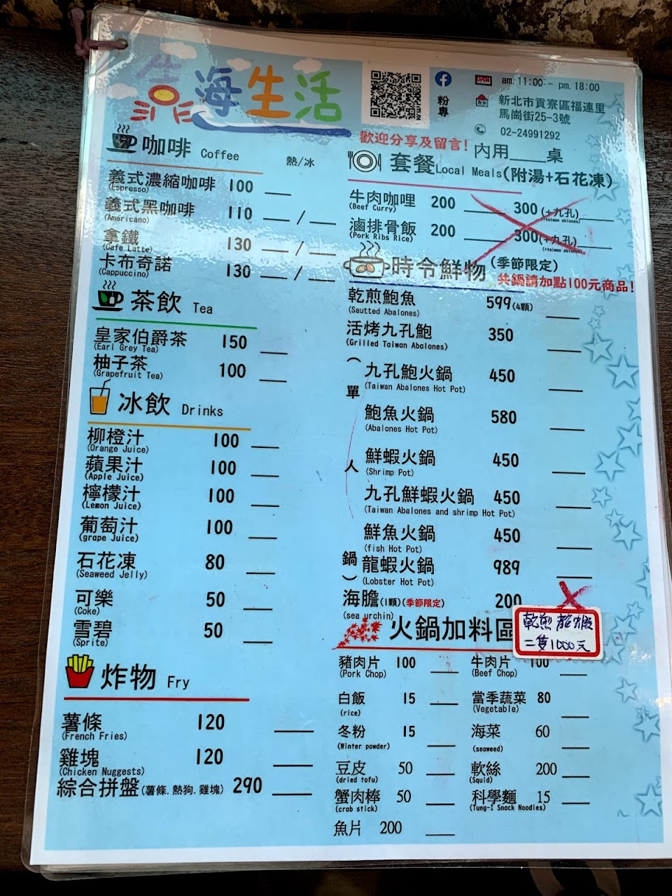 靠海生活位處極東之地,距離松山有90分鐘車程,餐廳內冷氣開放,戶外也有桌椅,坐在陰涼處看海,也挺舒適的,餐廳以生猛海鮮為主,前方是自家的九孔養殖池,店裏的九孔及鮑魚又大又新鮮,是行家必點。