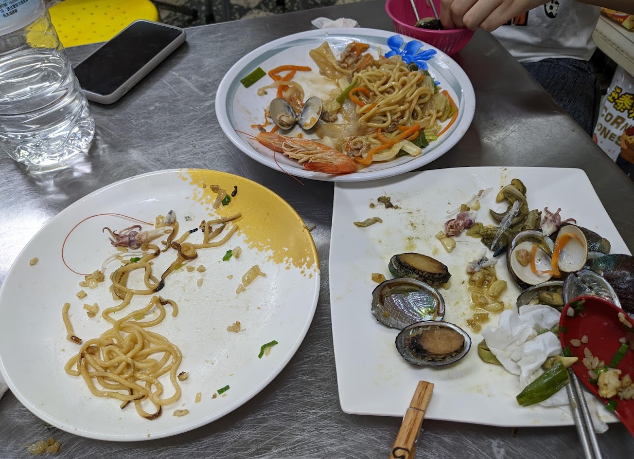 到店要很自覺自己去小本本登記等侯安排位子,沒有等太久這點還行,我們點了海鮮炒麵$120口味很普通沒啥好拍,九孔口味還可以,但是賣$420覺得沒那個價,小卷$200口味失敗有的表面還焦掉.又鹹又苦又難吃,花費共$740感覺當了盤子,非常肯定以後不會再來。