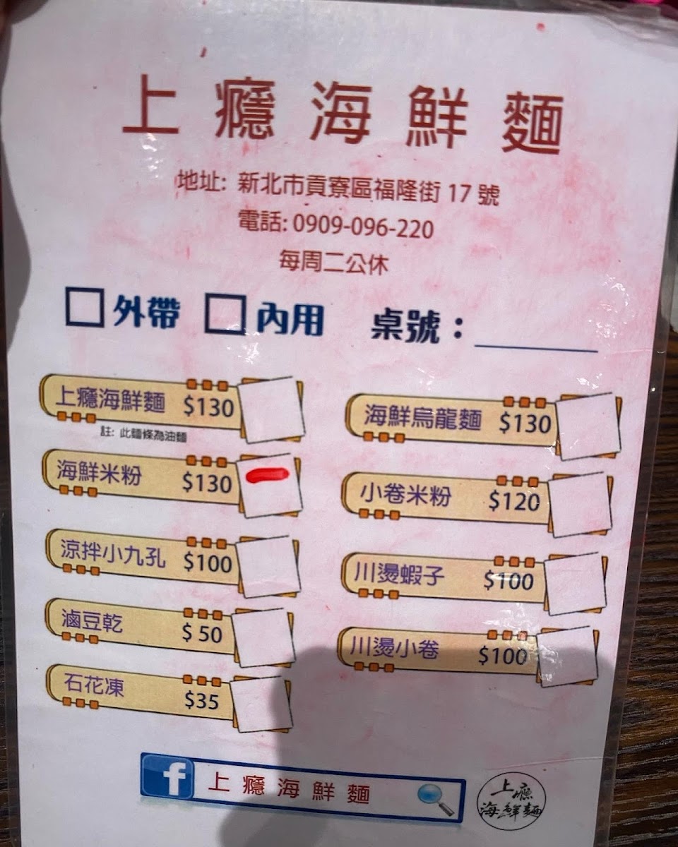 透過別人打卡知道這間位於福隆車站出口旁,店面不大有海鮮麵、米粉、烏龍麵、滷豆干、川燙蝦子小卷、石花凍飲料等價位中上先買單,蝦子小卷、蛤蜊算新鮮口味湯頭清淡不濃郁有些失望沒有預期的好吃。