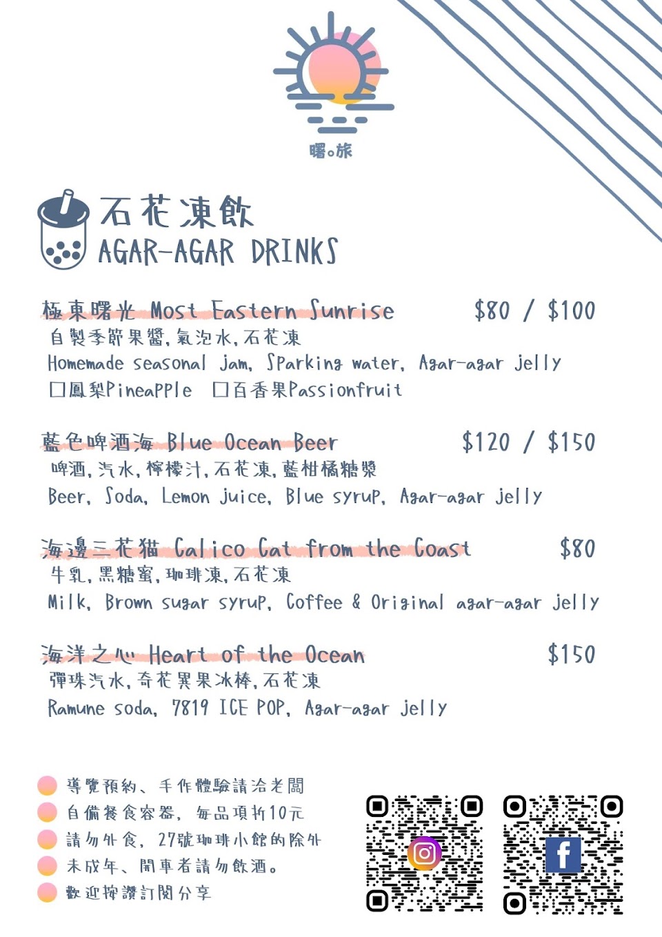 騎腳踏車路過的小店,一開始是被門口的招牌吸引,點了兩款石花凍特調:三色貓跟極光,牛奶的濃厚跟石花凍超搭,咖啡凍更是畫龍點睛?鳳梨果醬的清爽滋味就更不用說了,騎完車喝超級舒服?空間裡面也有很多馬崗在地的故事可閱讀,有到福隆一遊的朋友,一定要嚐嚐! …
