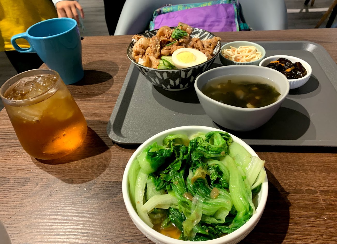 點了牛肉丼,配菜是韓式的,意外的不錯吃,湯也不錯喝,不是地雷,可以嘗試看看~