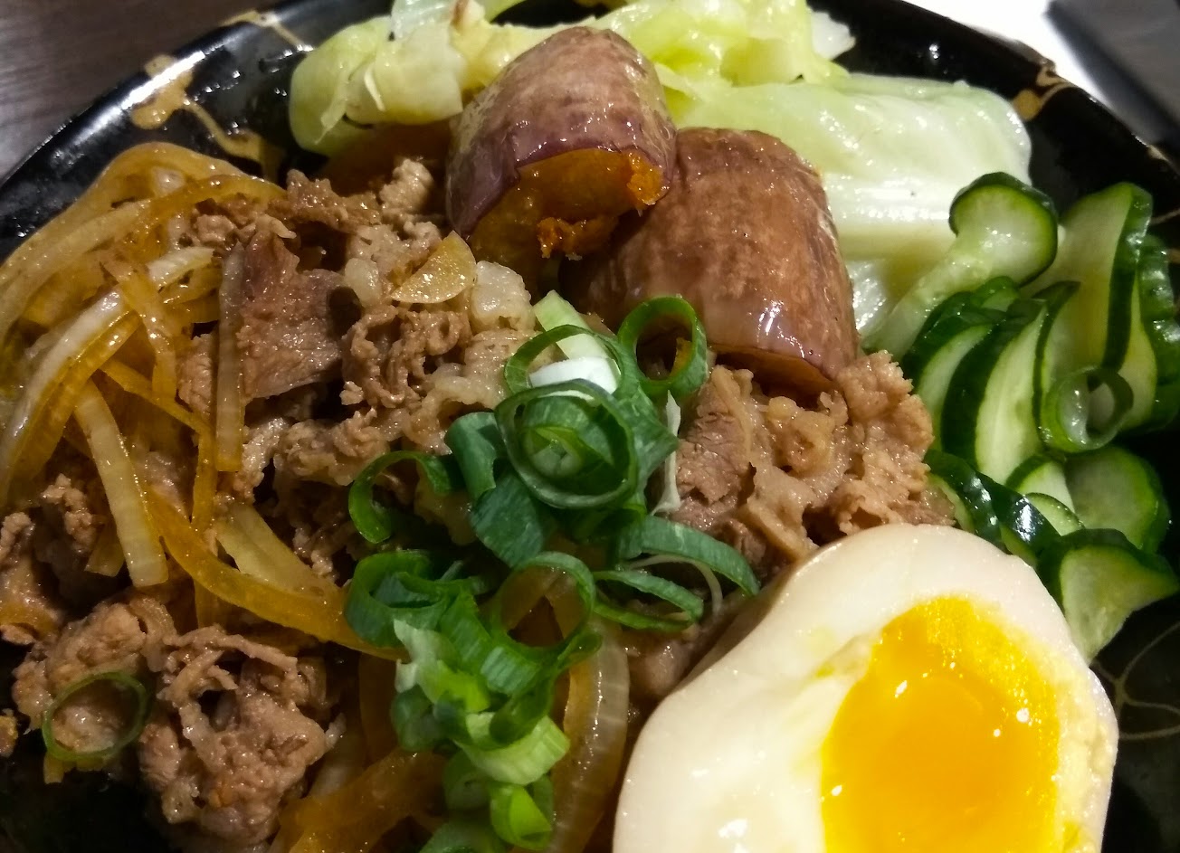 但主餐部分就較為普通了,點的是牛丼+日式豬排咖哩飯,豬排較薄味道也普通,牛丼肉片部分較少,吃起來像是便當店裡的雙主菜便當,