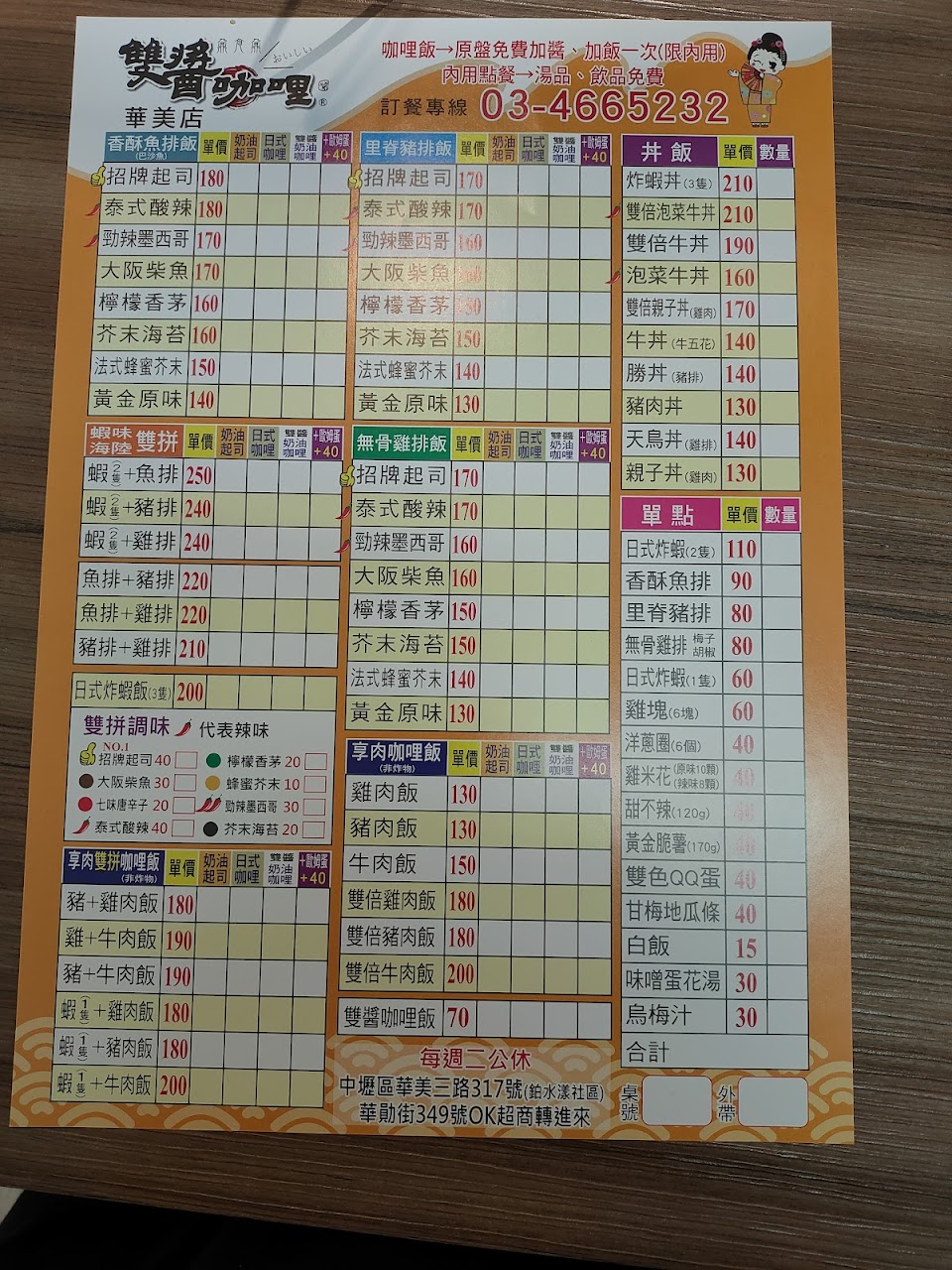 2024最新在地推薦餐廳的菜單_雙醬咖哩 – 中壢華美店的菜單、圖片
