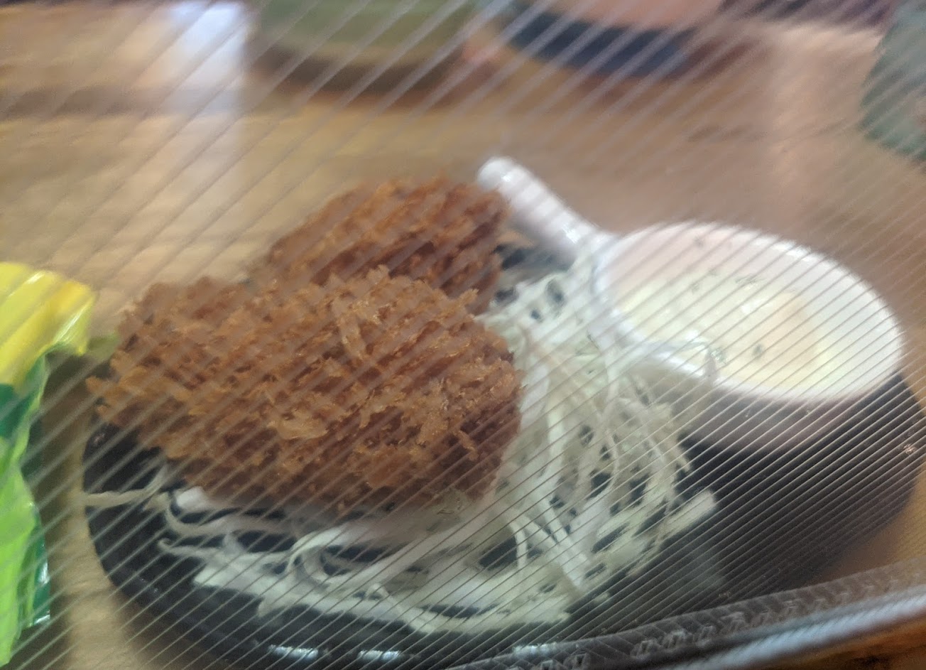可樂餅有兩大塊味道剛好,咖喱屬於碎肉咖喱醬的那種,很讚,個人比起湯咖哩更喜歡奇瑪咖哩的醬。蔬菜種類多,基本上份量大到吃不完,食量大的還可以加飯,副餐有蘿蔔片可以解膩,還有兩片芭樂。