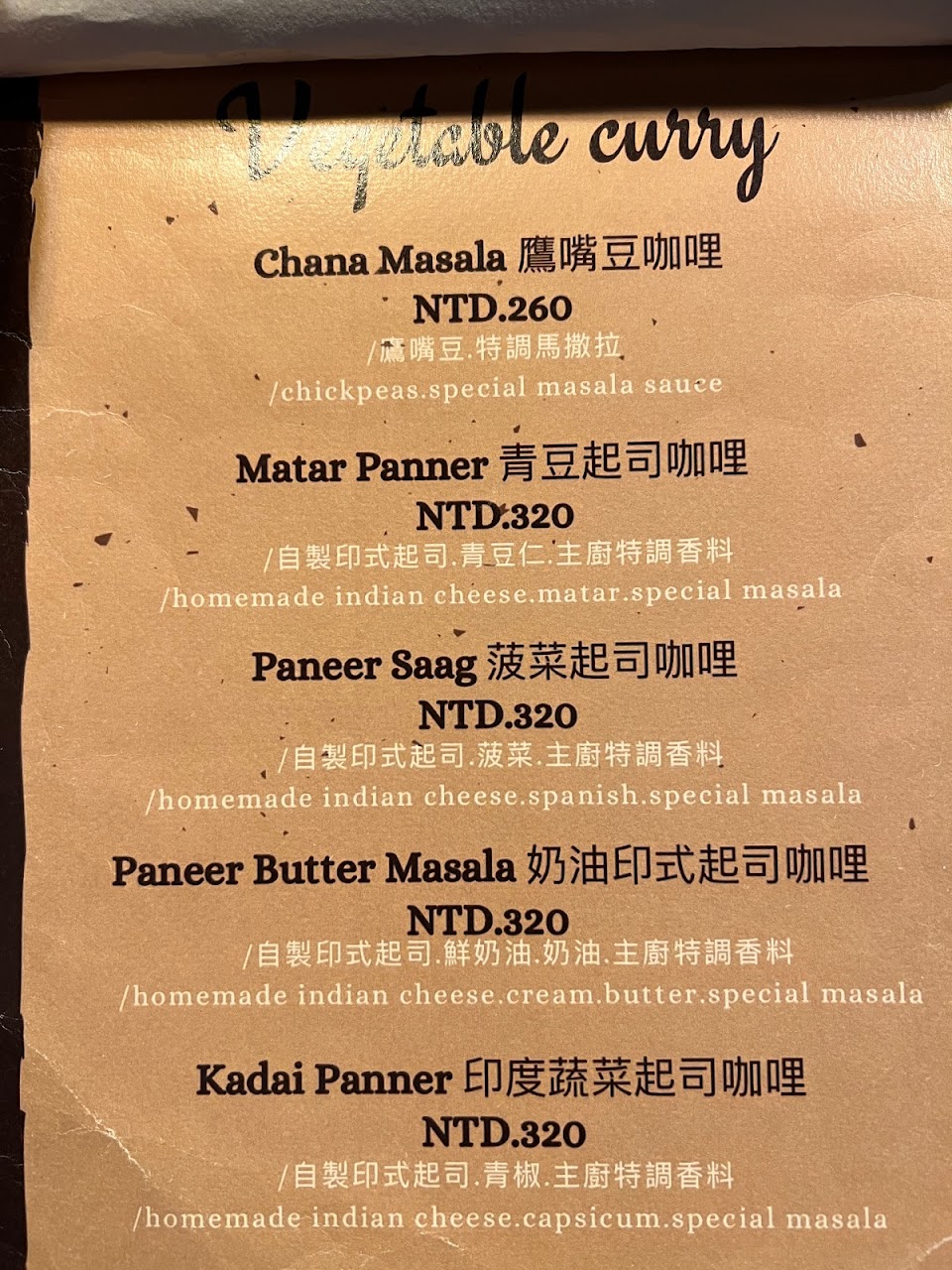 感覺是非常道地的印度料理,一進餐廳就會感受到非常重的香料味,幾乎所有的料理、飲料、甜點都會下很重手的香料? 算是蠻特別的異國體驗,好吃