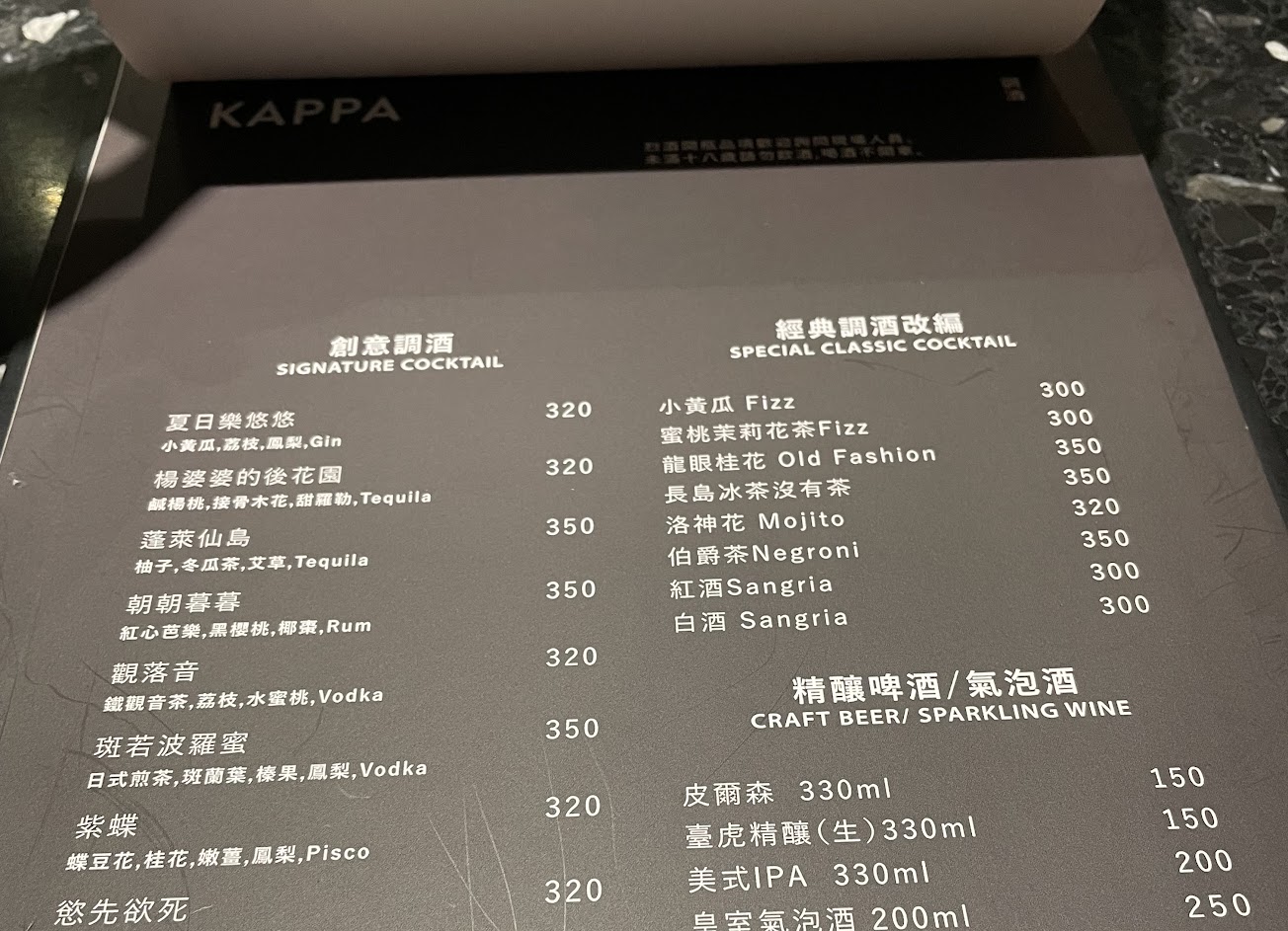 收了服務費建議還是在服務上多一點點功夫,店員很親切介紹帶位也都有,但忘了上水,另外建議可提供籃子給客人放包包或吧台區及窗邊坐位能在桌子下面裝勾勾。