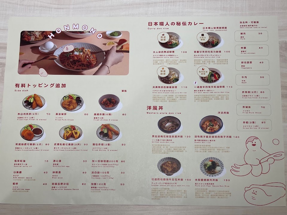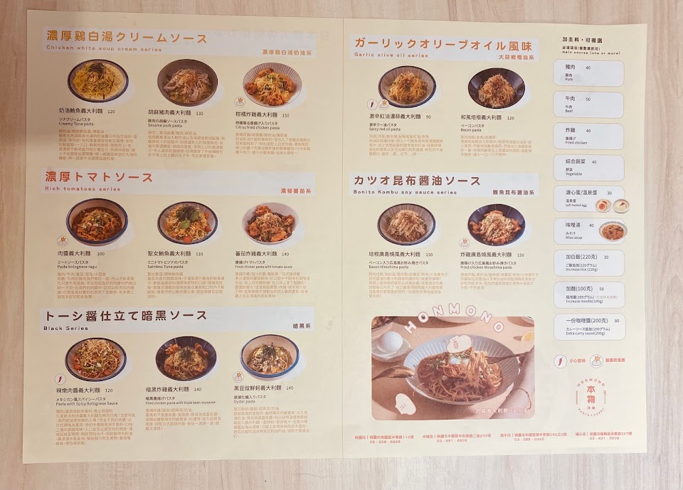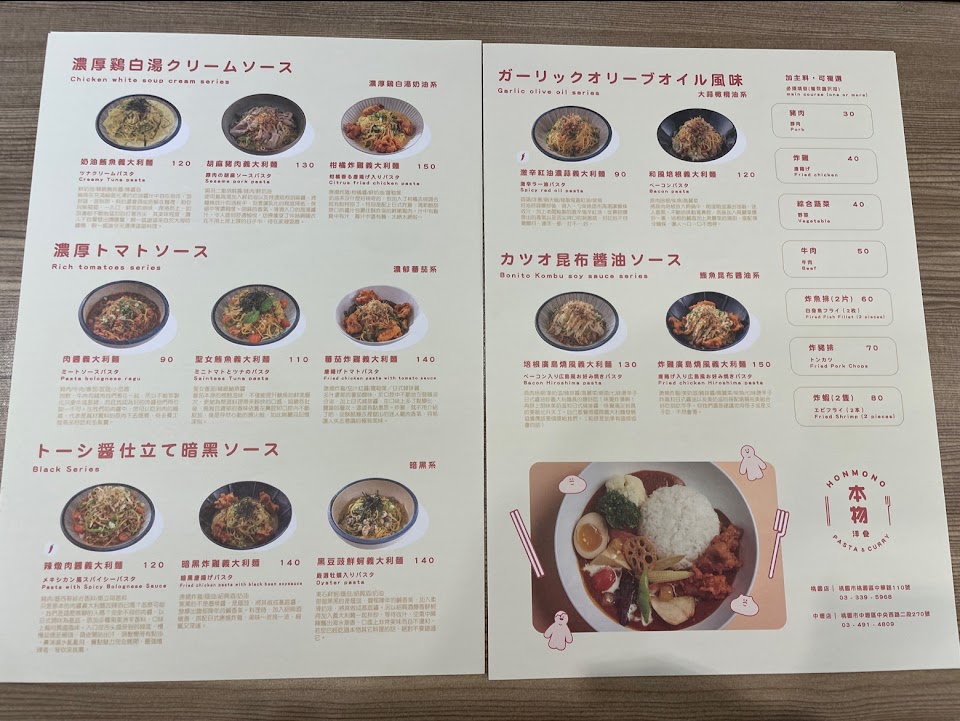 2024最新在地推薦餐廳的菜單_本物洋食 Honmono Pasta & Curry 內壢環中店的菜單、圖片