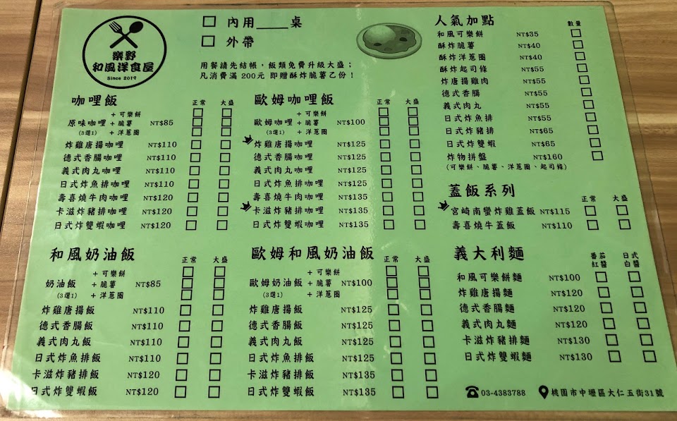 2024最新在地推薦餐廳的菜單_樂野和風洋食屋的菜單、圖片