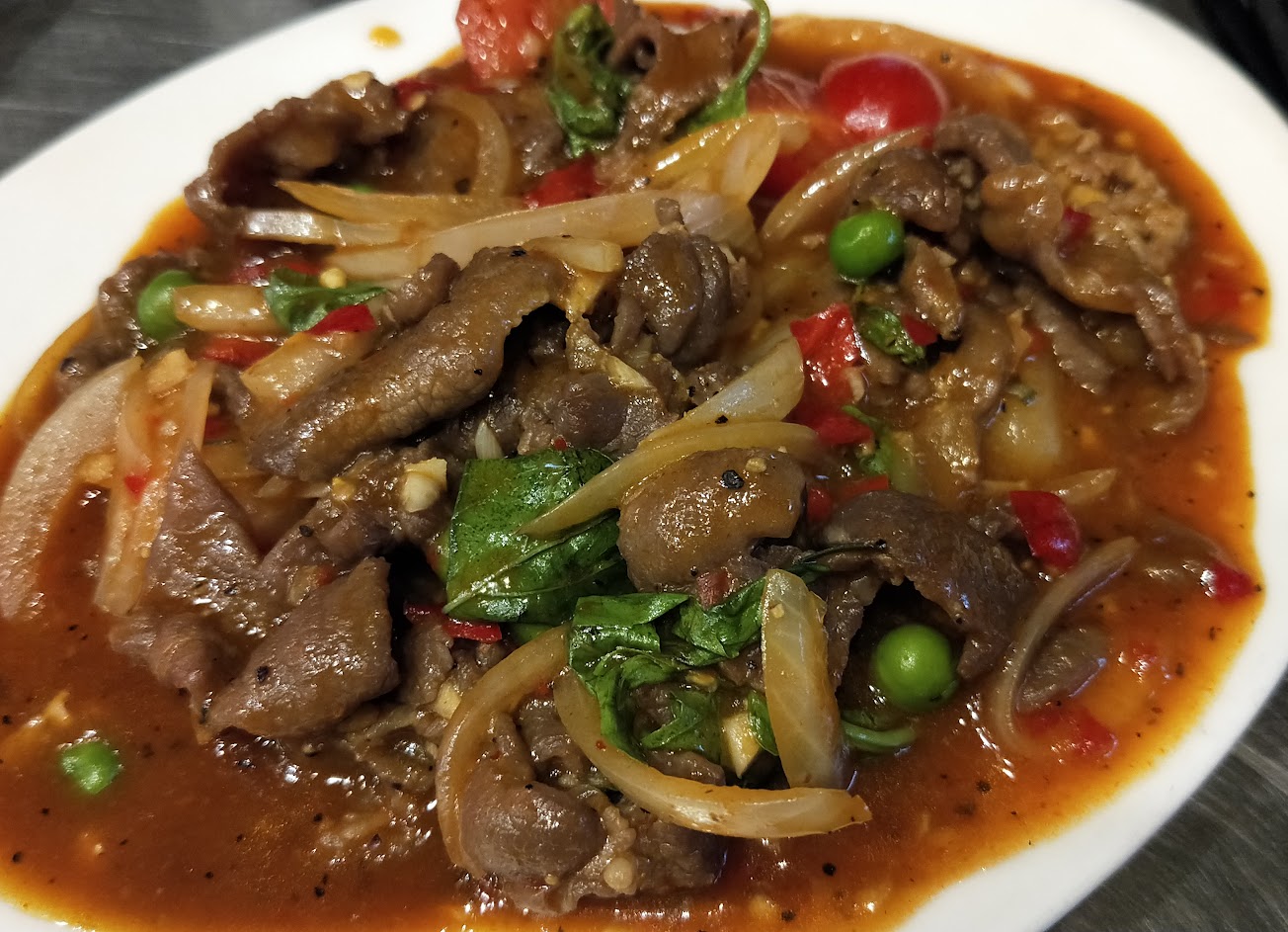 因為聽說老闆是湄南小鎮的廚師覺得應該不錯所以來嚐鮮!點了牛肉燴飯和蛤蠣湯,牛肉燴飯不錯吃但份量偏小,蛤蠣湯口味偏甜。我朋友吃炒泡麵,但他覺得炒泡麵裡面加的檸檬汁調味,嚐起來不是用新鮮的檸檬汁(可能是用超市買那種的罐裝檸檬原汁)所以味道沒有很優。若能改成用檸檬原汁調味應該會比較好
