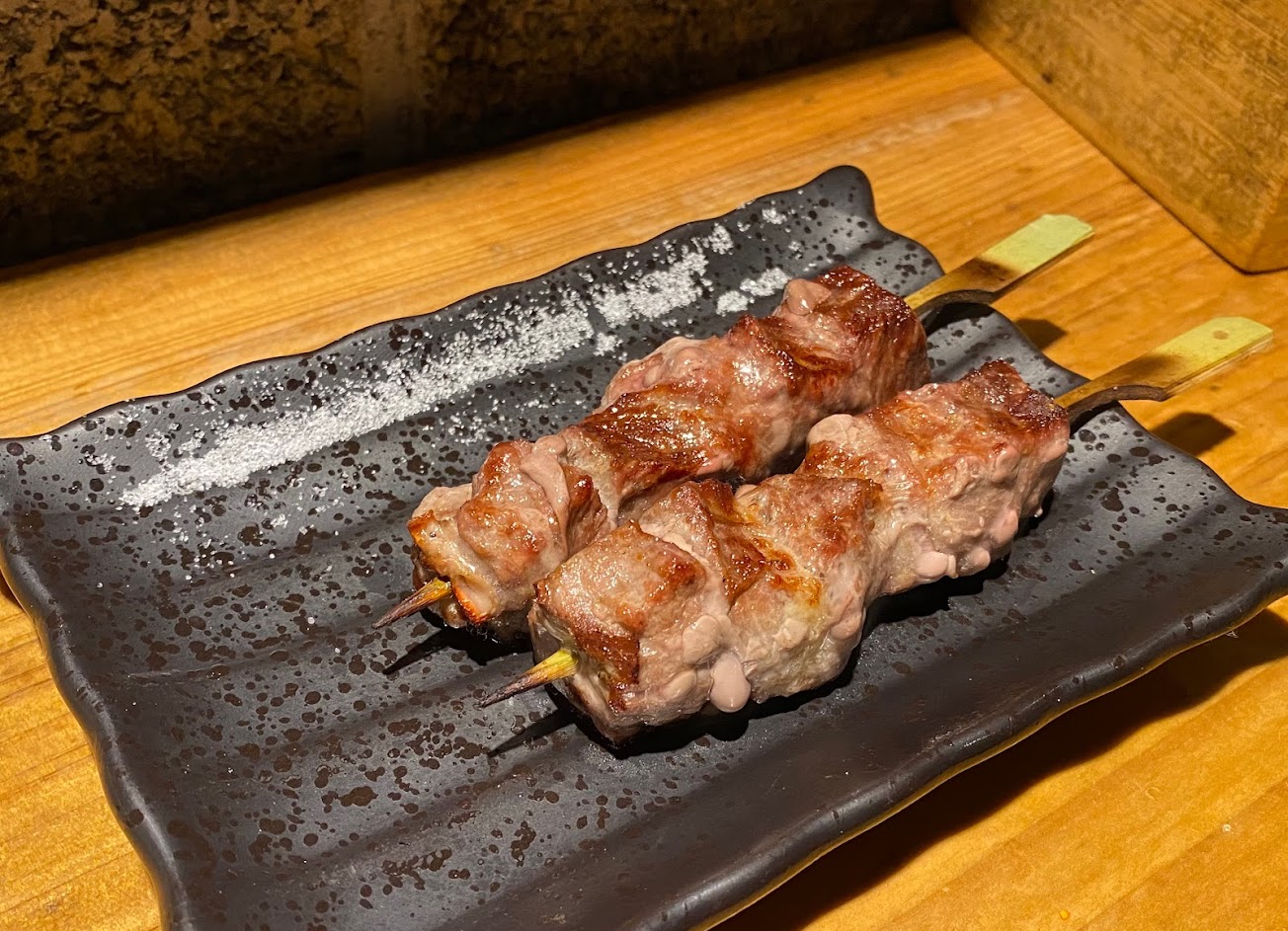 明太子雞肉串上頭的明太子味道非常濃厚,不得不說,擠上旁邊附的金桔後味道上又多了不一樣的層次和變化,後來點的其他東西分別為松阪豬、秋刀魚、肥腸等等。