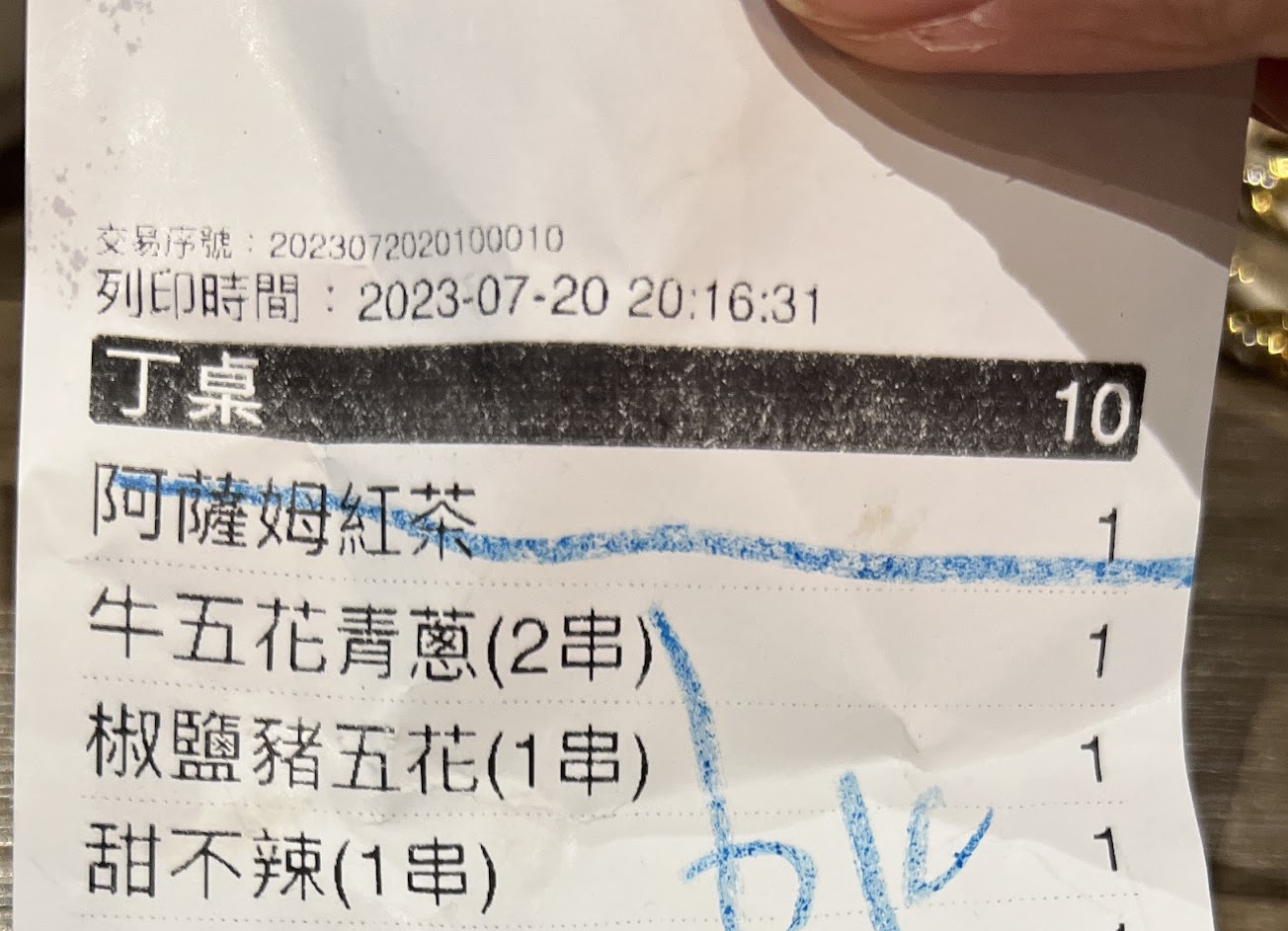 等快一小時來四串,出餐的速度等到我都飽了 謝謝店員幫我省錢。