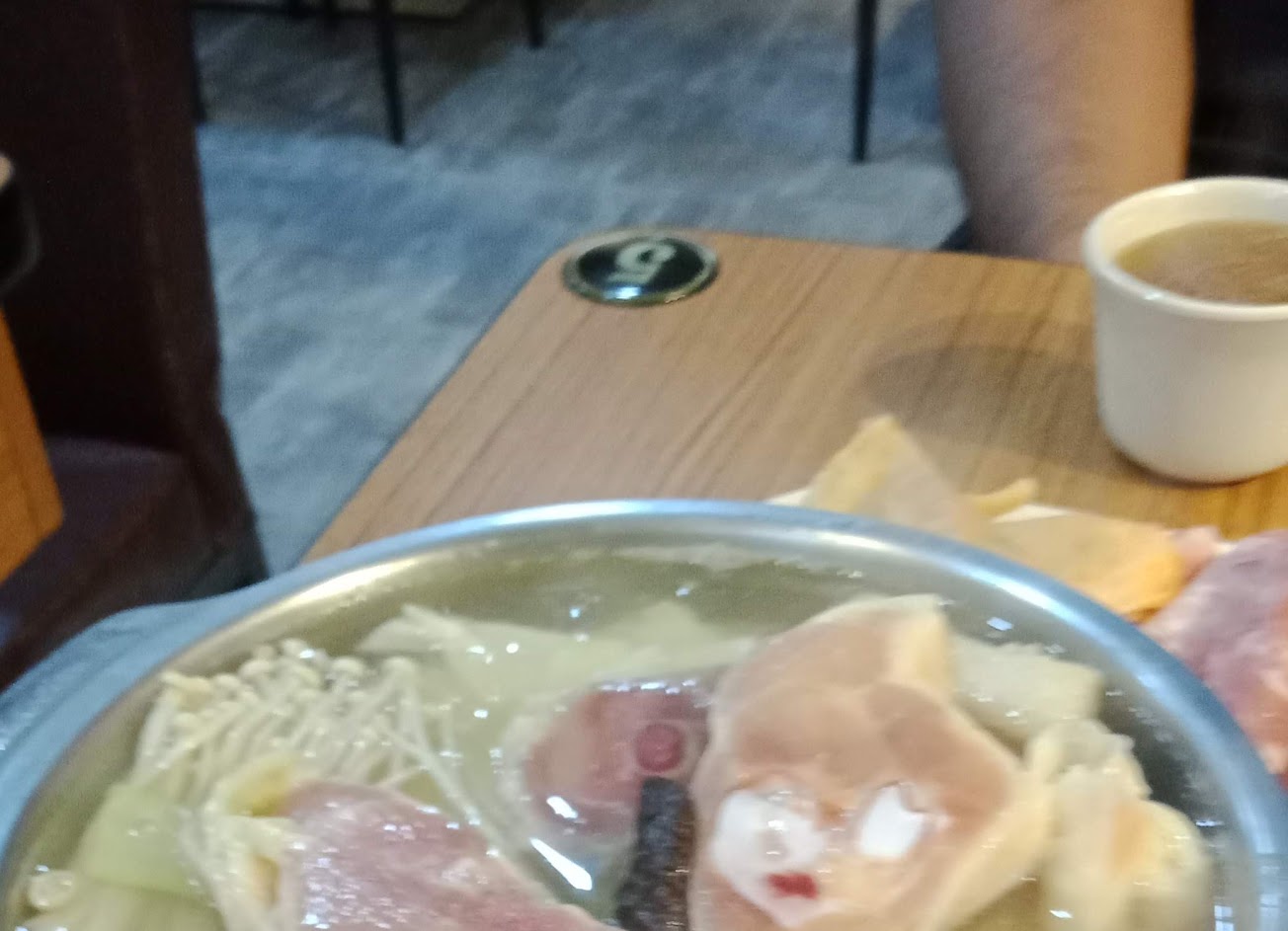 店員態度親切友善,飲料、白飯自助吃喝到飽,我點的香菇雞湯鍋雞肉大塊又多其他的火鍋料還好,湯底鮮甜不過鹹,新開幕一鍋還折10元,平價美味推薦喔!