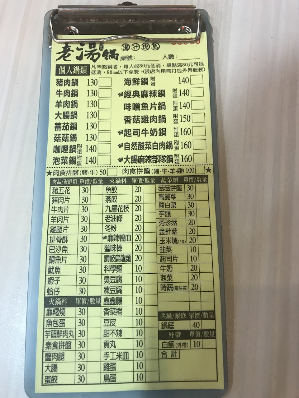 小火鍋本身料比其他110~130的再多一些,加點普遍20~40,還有牛豬、菇類拼盤之類