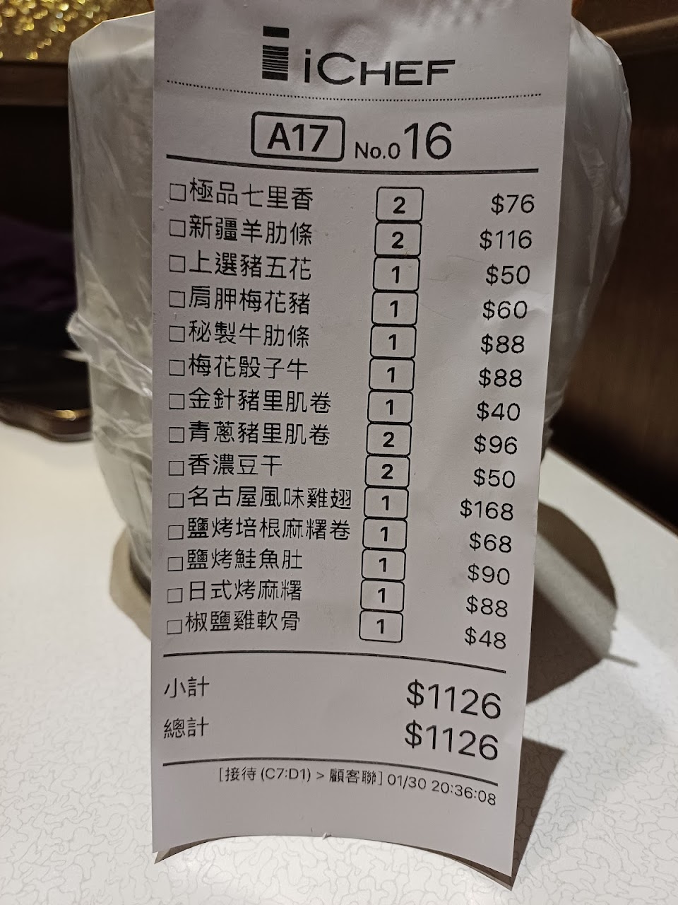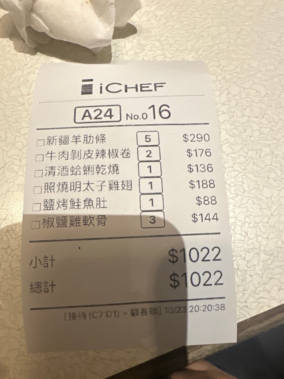 上餐完畢看菜單多出兩個沒點的餐點 跟店員反應之後過後過來馬上在數竹籤
