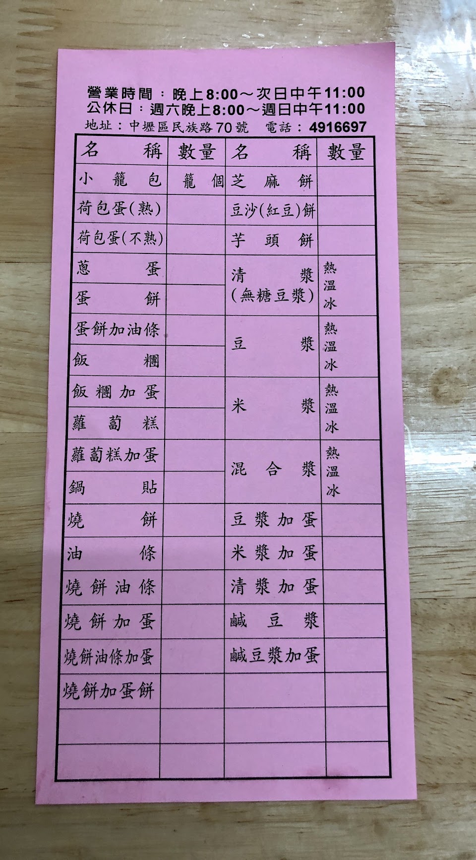 第一次來朝聖中壢人都知道的店,店內姊姊們態度超好。平常不喜歡在早餐店點小籠包的我,竟然都被小籠包驚艷到了,現場手工包製,內餡肉新鮮還有加上蔥,好吃,有驚艷到。再來不得不提燒餅油條也很優秀,燒餅酥酥脆脆,油條完全不刮嘴,很香很讚。最後是豆漿,豆香味濃厚,好好喝。今天特地來吃宵夜,真的不虛此行!