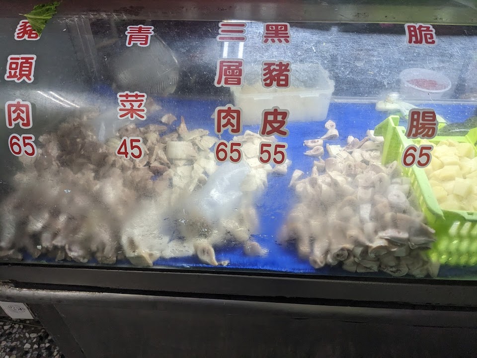 大鍋湯:裡面有豬血,筍絲,紅蘿蔔,白蘿蔔,排骨,魚皮,丸子…等用料很豐富,但是味道不是古早味,也不像南部口味,味道蠻平凡普通。