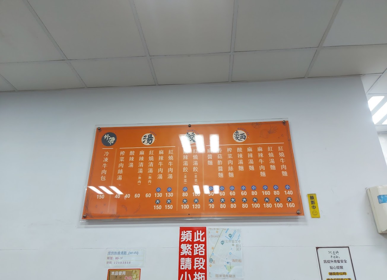 ??今日所點:紅燒牛肉麵($140)、紅燒湯麵($80)、小菜+燙青菜($125)