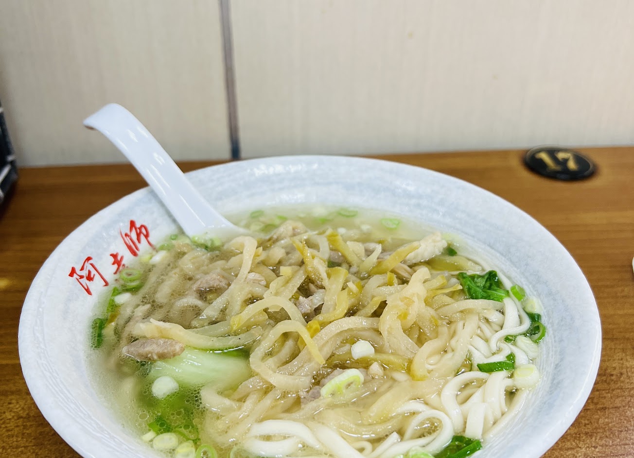 第一次走比較遠來嚐鮮,陽春麵的麵條紮實有咬勁,雜菜肉絲的湯頭很鮮甜且不油膩,用餐時間生意很好??