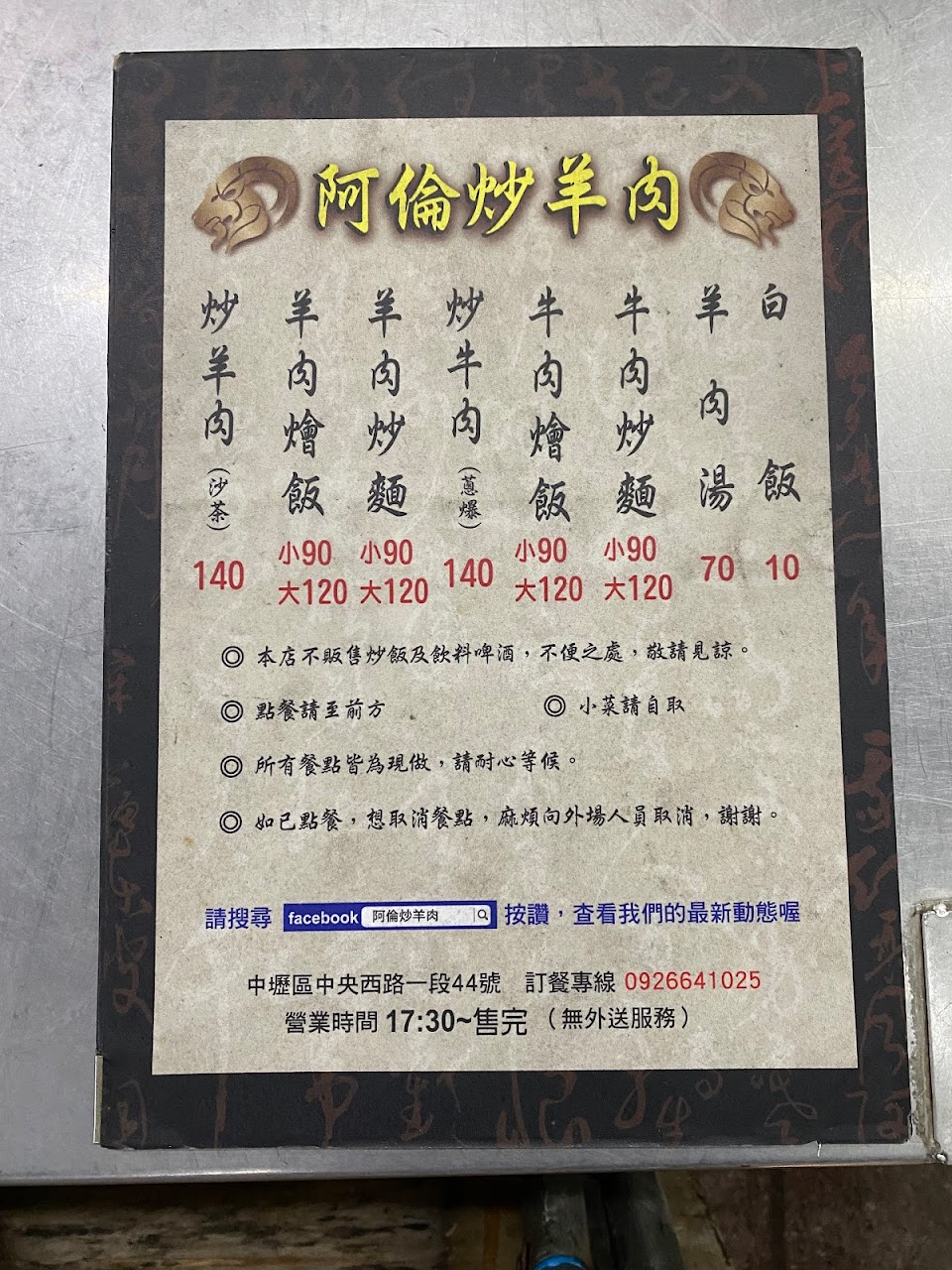 2024最新在地推薦餐廳的菜單_阿倫炒羊肉的菜單、圖片