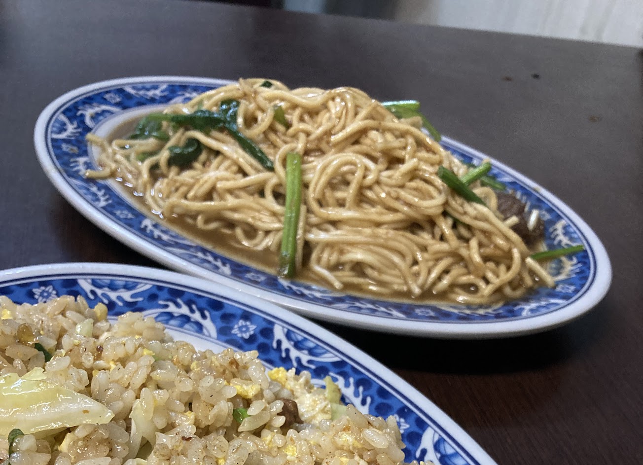 牛肉炒麵、蛋炒飯、苦瓜鹹蛋、蚵仔煎蛋、蛤蜊湯