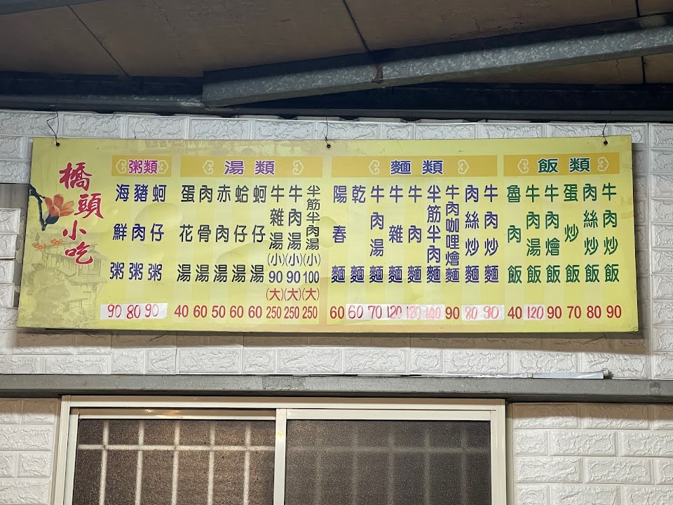 2024最新在地推薦餐廳的菜單_橋頭小吃的菜單、圖片