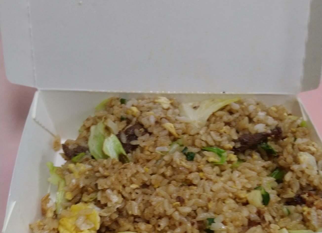 牛肉炒飯90元,一個飯盒只裝八分滿,我覺得份量不行