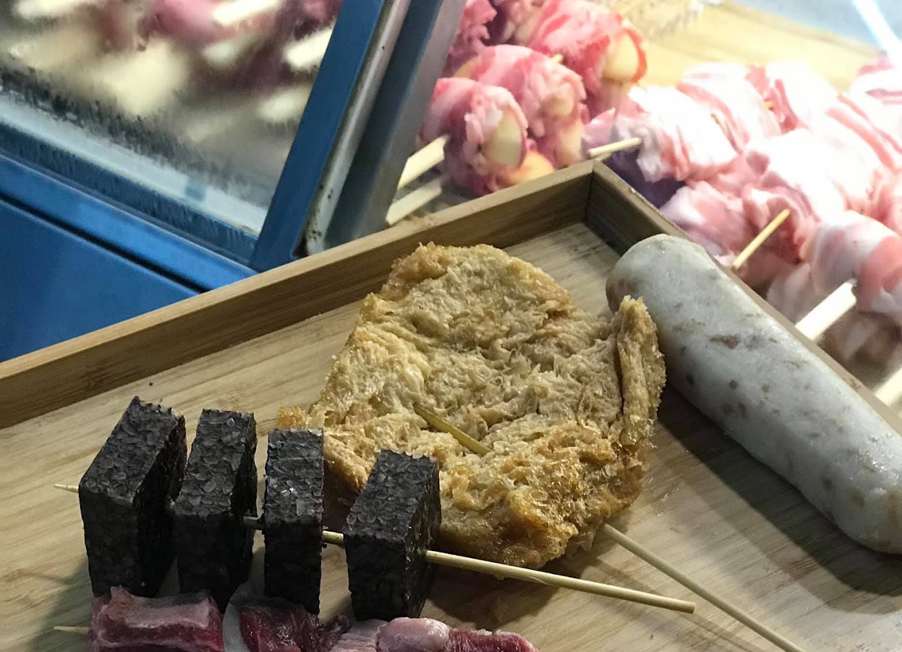 起士牛肉串跟剝皮辣椒牛肉串熟度剛好,豆干跟米血糕降溫後外皮依然香脆!