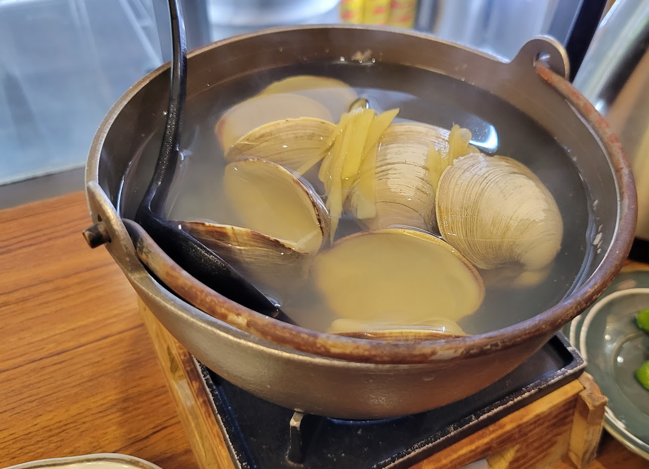 ▲海鮮味噌湯:窗邊自己無限取用,裡面是各種蝦頭魚骨熬成的,味道很香。