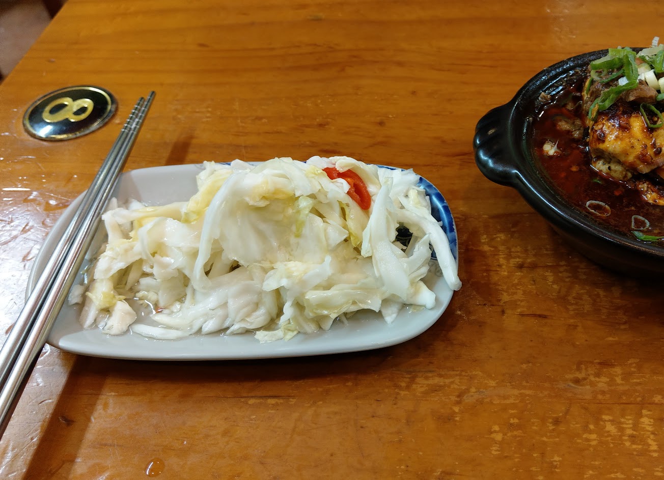 2018/11/25(日)20:07 ❖ 麻辣臭豆腐($70)小辣。 ❖ 泡菜($30)酸酸甜甜,蠻開胃的。