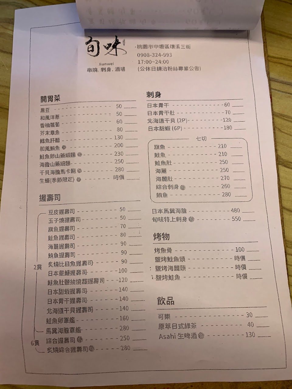 2024最新在地推薦餐廳的菜單_旬味(串燒、刺身、酒場)的菜單、圖片