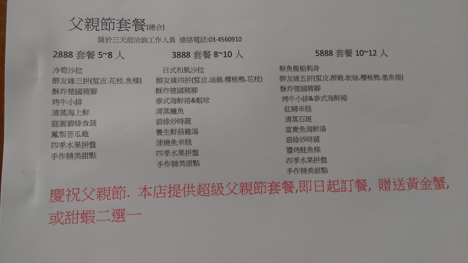 2024最新在地推薦餐廳的菜單_醉友緣平價海鮮餐廳的菜單、圖片