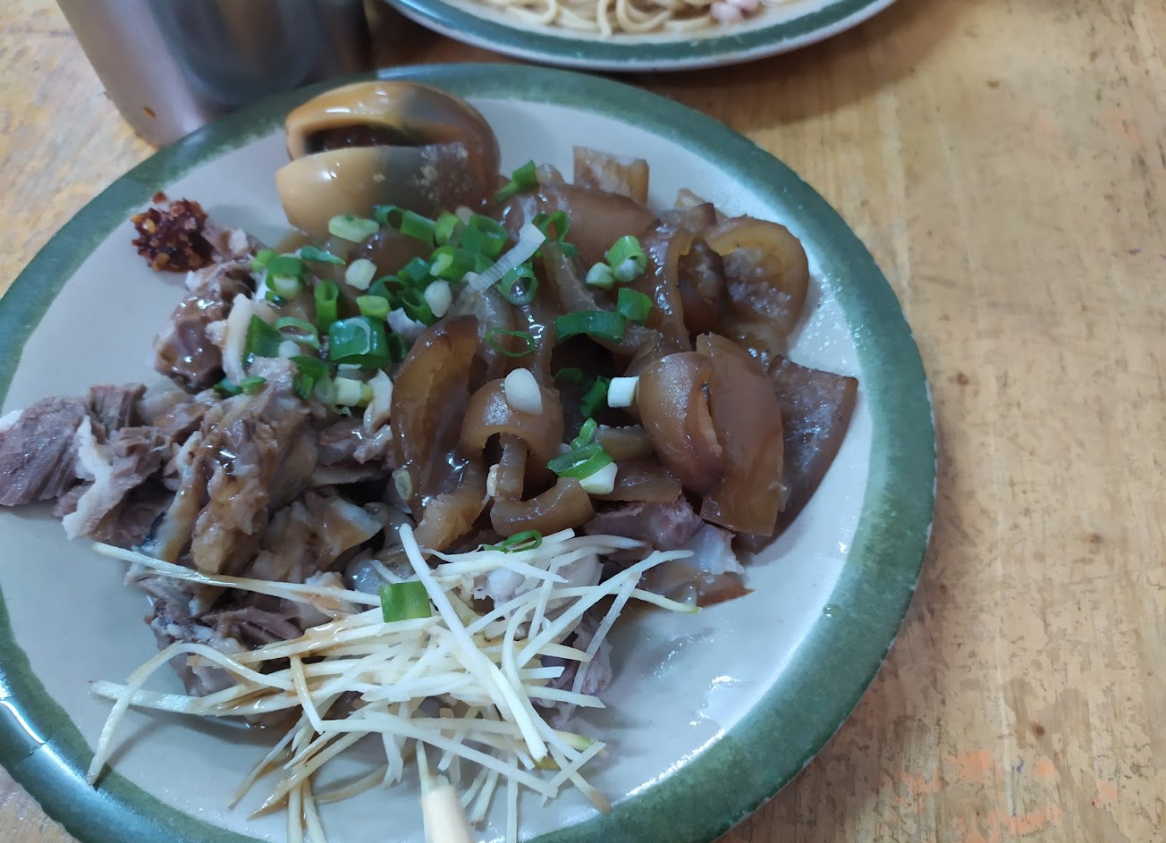 招牌牛肉拉麵配上豬頭肉,推薦!