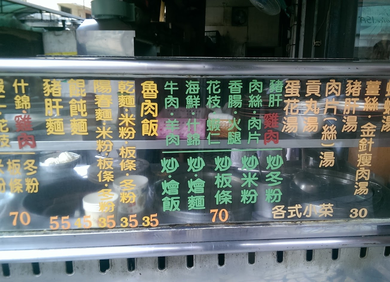 (1)平價,味道一般 (2)店家營業佔用騎樓,附近難停車,有一回到此入內用餐,想在其門口暫時停放機車,竟不允准!從此,不再來此消費。 (3)建議,騎乘機車朋友們千萬別來此消費,免得消費還受氣。