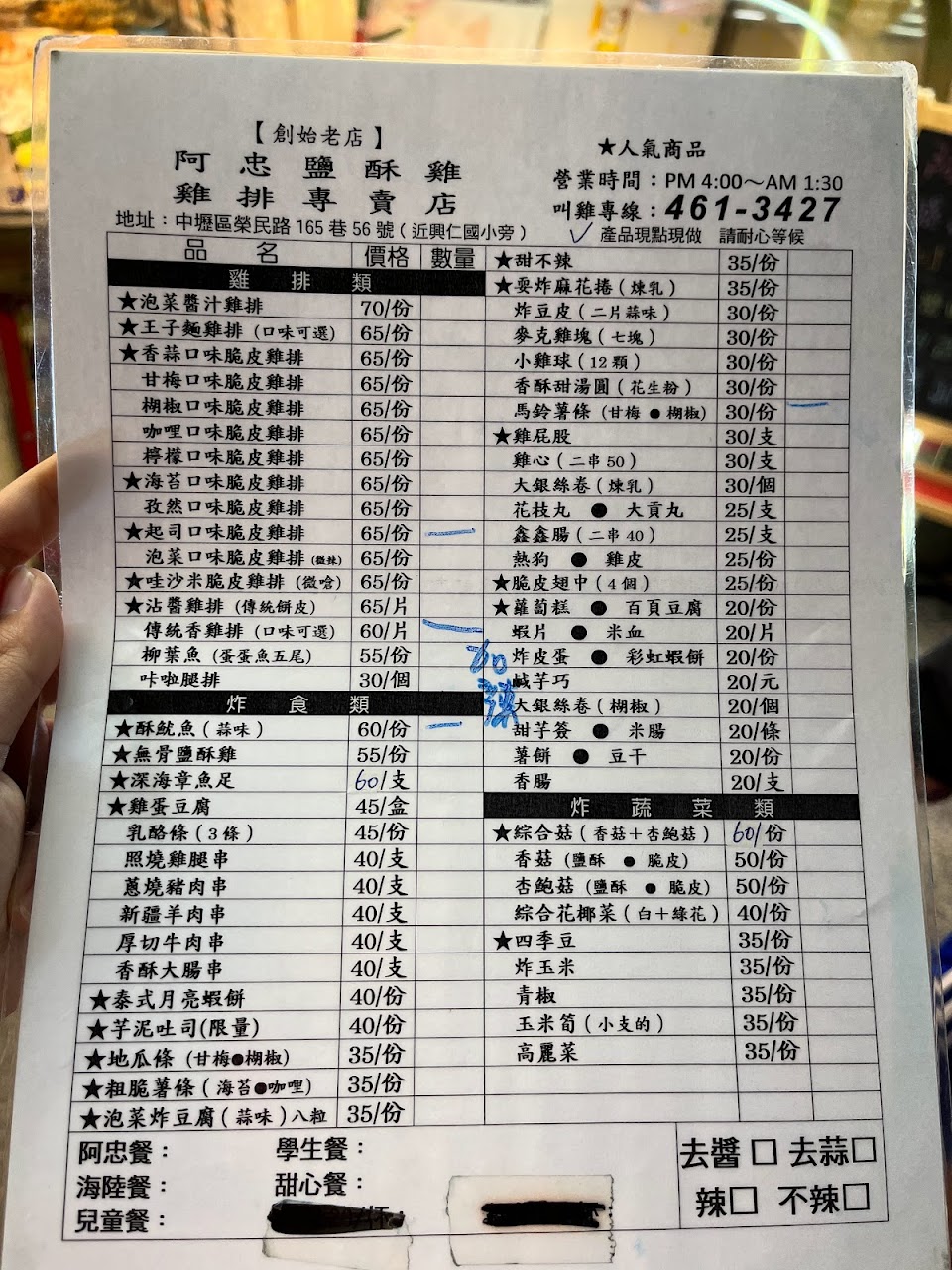 2024最新在地推薦餐廳的菜單_阿忠雞排鹹酥雞的菜單、圖片
