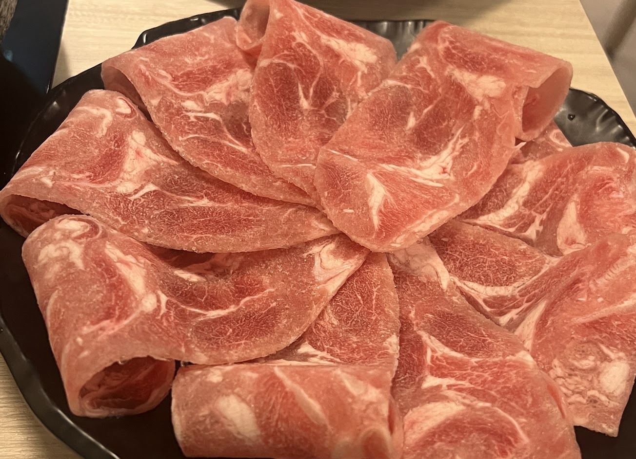 板腱牛肉還不錯。蔬菜是自助吧自取,種類還蠻豐富的,也有苦瓜、甜椒等比較不常看到的品項,喜歡吃蔬菜的話還蠻不錯的,也有花枝漿跟蝦仁漿。