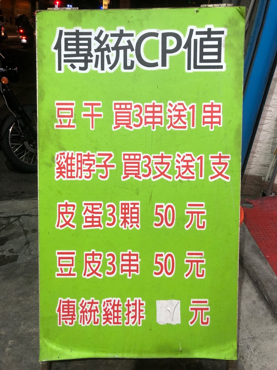 看到網路群友們的推薦,立即騎了20Km的機車前來購買,買了鹽酥雞,四季豆,甜不辣,雞屁股兩串,魷魚。果然如網友們說的一樣,真的都推薦。每樣食物都炸的剛剛好,只有雞屁股因為本身食材就不大,炸完之後變得更小,稍微硬一點但是還能接受,其餘的餐點都很完美。