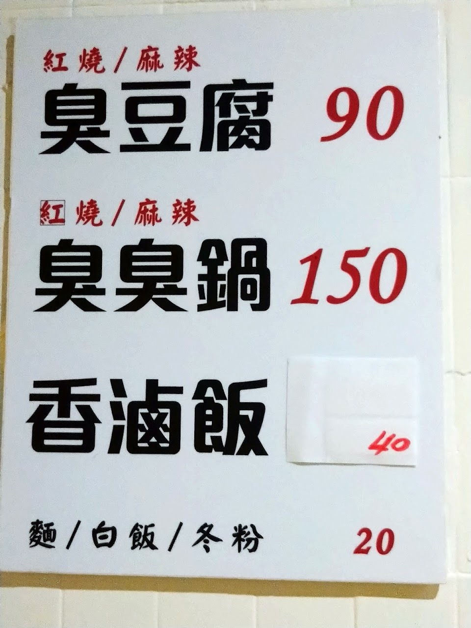 這間速食店,並沒有賣太多餐食,只有簡單的「臭豆腐 80元」、「臭臭鍋 150元」與「素滷飯 40元」,店內有兩個人手,店員們都很真誠地接待每一位客人,會主動引導座位、餐具位置(發現我口罩不見,老闆還主動的送了我兩份口罩,服務?)